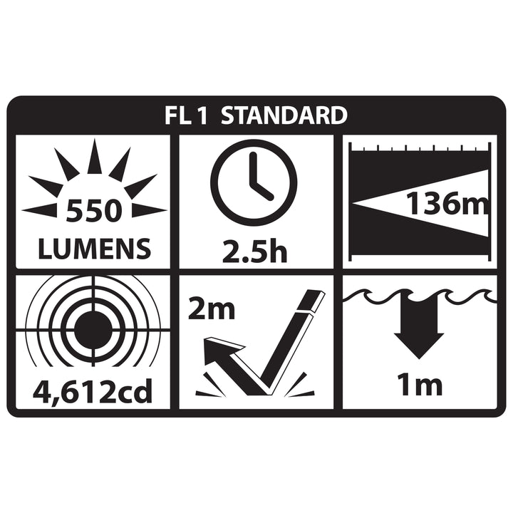 Powerful Illumination: The LGC-550XL boasts a super-bright LED rated at 550 lumens, working seamlessly with a precision-engineered total internal reflection (TIR) lens. This dynamic duo creates a brilliant white beam of light rated at an impressive 136 meters, ensuring enhanced visibility in any environment.