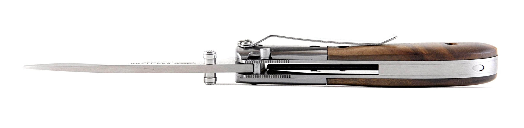 Designed for everyday carry, this compact knife boasts a closed length of 3.87 inches, making it ideal for daily use. The wood handle, complemented by stainless steel bolsters, exudes refinement and class. Choose the deluxe model with burled wood scales for a truly distinguished look.