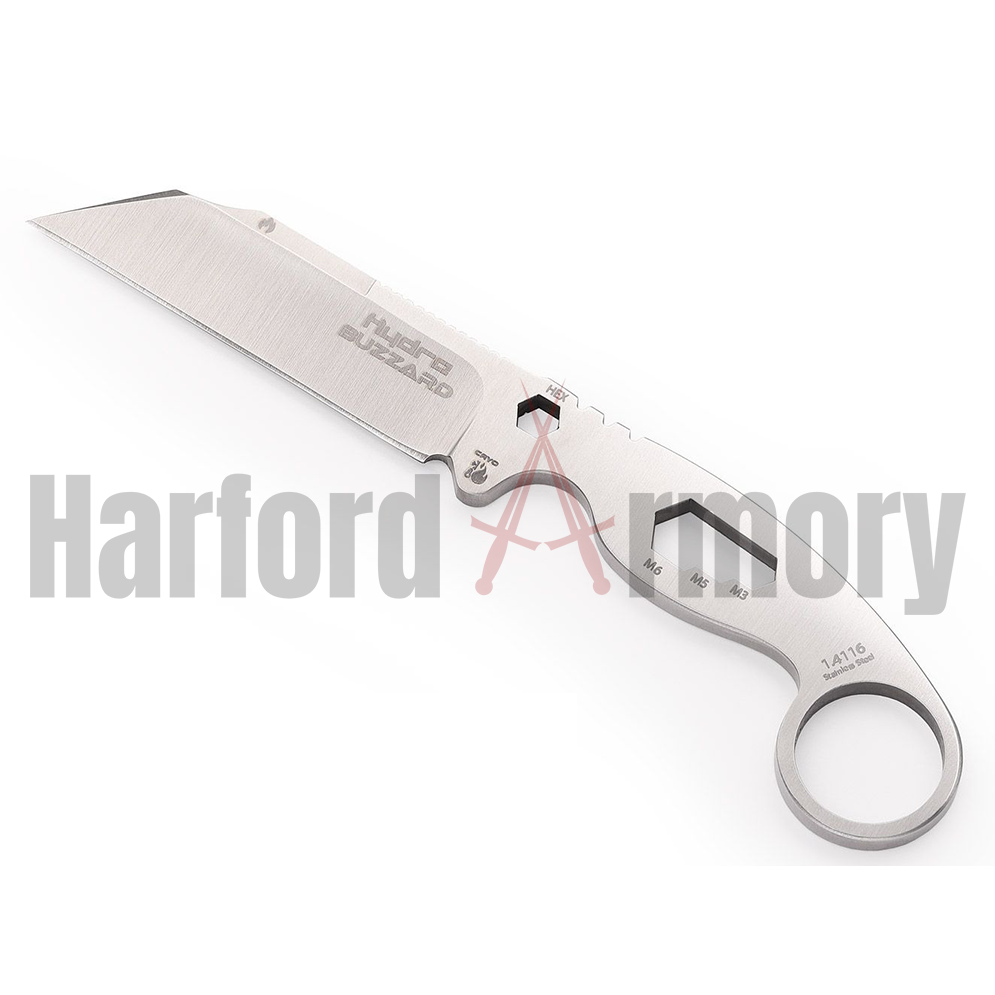 The Hydra Knives Buzzard Neck Knife Hawk is designed for practical EDC use, providing a balance between a good blade and versatile tool functionalities. Its compact size, multifunctional features, and premium construction make it a reliable companion for various everyday tasks.