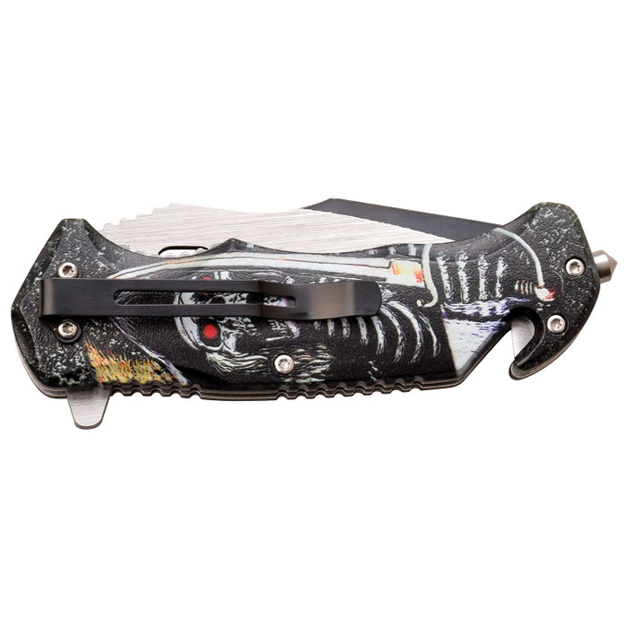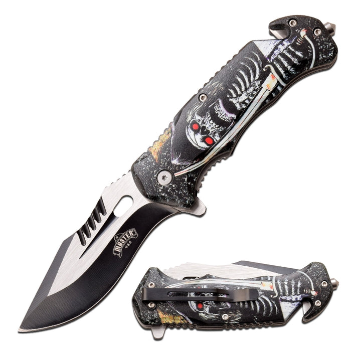 Upgrade your everyday carry with the Spring Assisted Skeleton Knife. With its stylish design and practical features, it's the perfect companion for any adventure. Order yours today and experience the convenience and reliability of spring-assisted opening.