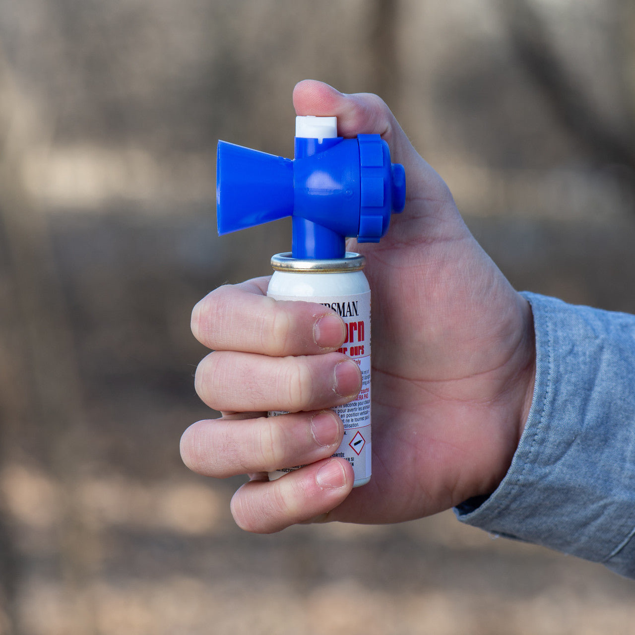 Sabre Frontiersman Bear Horn with On/Off Locking Top to Prevent Accidental Deployment.