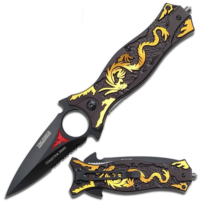 Elevate Your EDC with Tac-Force Dragon Spring Assisted Knife in Gold