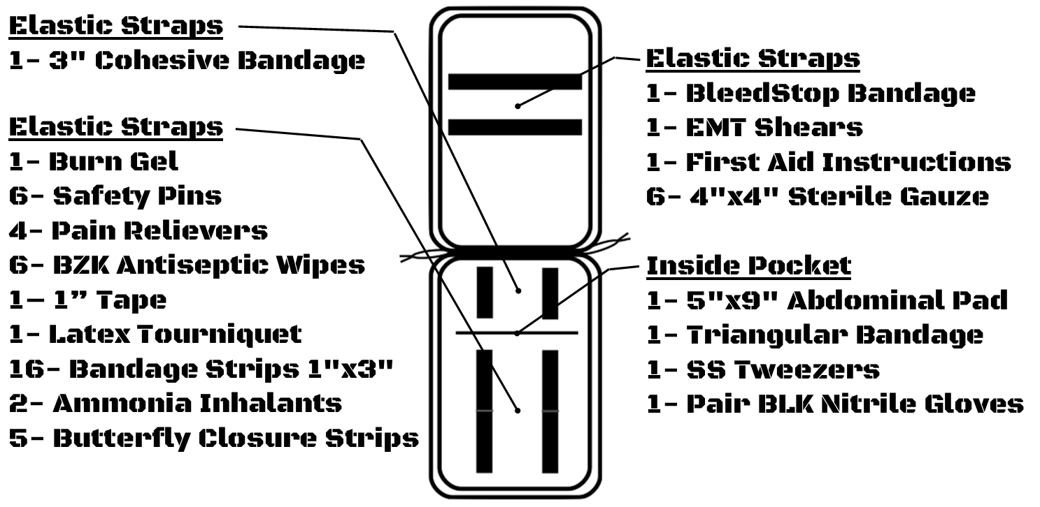 | BZK Antiseptic Wipes | 6 | 1" Tape | 1 |