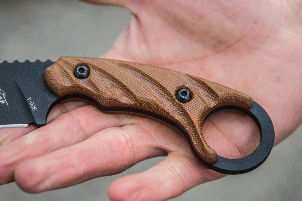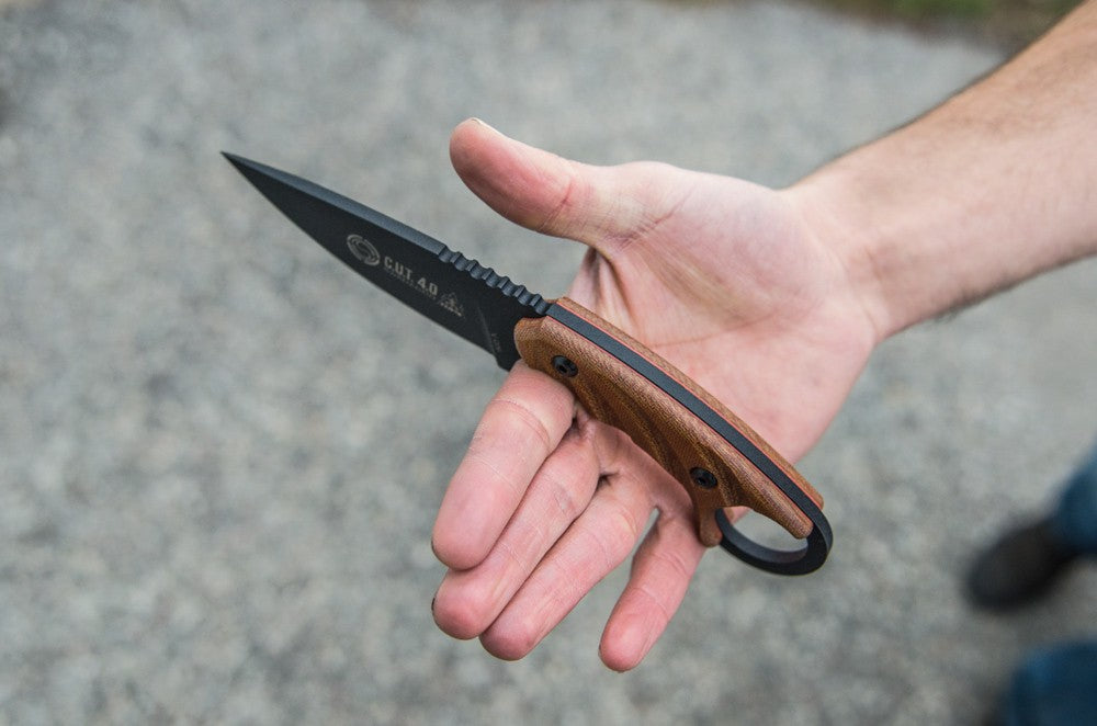 This is truly one of my favorite fixed-blade knives. I've trained with karambits, but I'm not a fan of their inward curving blades. The CUT 4 gives you the benefits of a karambit grip with the versatility of a straighter-edged blade. For me, this gives the knife a lot more flexibility in how it's used over a karambit. This thing is extremely well made. It's super rugged and feels great in my hand. I love the ring for quicker draw and a solid grip that's far less likely to get disarmed. As a self-defense knife, this is absolutely top of the line.